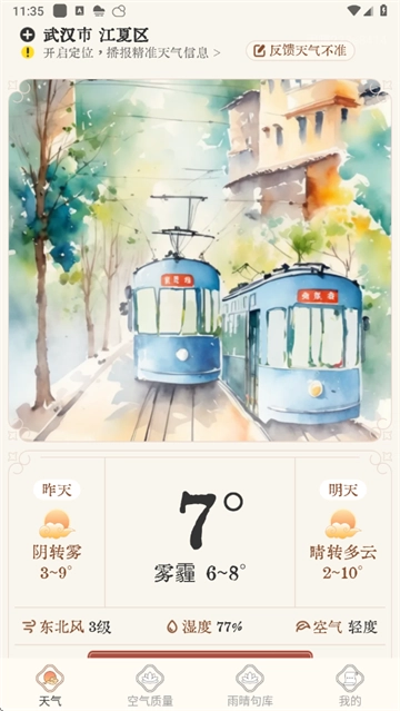 4、雨晴天气预报还“空气质量”板块,让用户能够了解实时的空气状况。