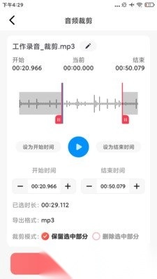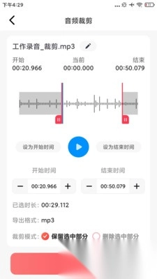 1具备各类剪辑工具,可实现对音频的剪裁、合拼、压缩、倒放以及设置播放倍数等操作。