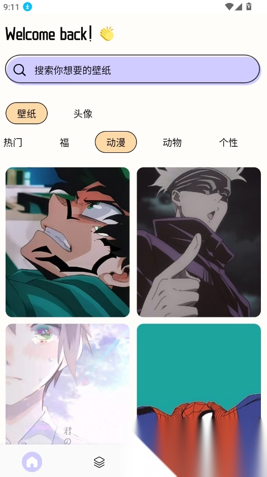 1. 提供多种风格主题的壁纸与头像,涵盖动漫、时尚、风景、个性以及情侣等类型。