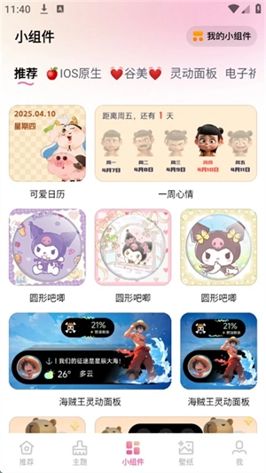 5、在小组件提供了各种动态小组件。