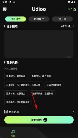3. 只需输入一段音乐描述并选择想要的音乐风格,系统就能生成完整的歌曲。