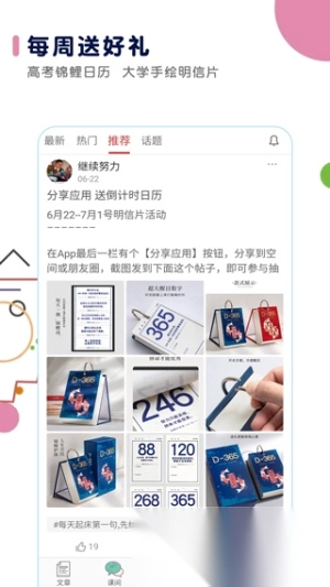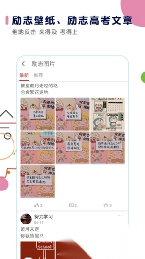 3.随时向用户推送充满正能量的壁纸和文章,用乐观的心态来面对高考。