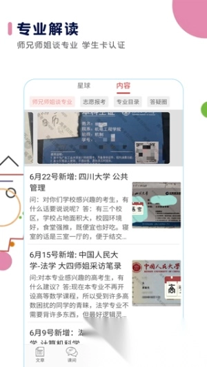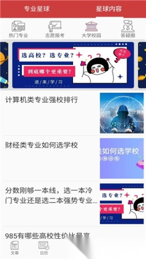 3.在【星球】页面能查看与高考相关的专业信息与资讯内容。