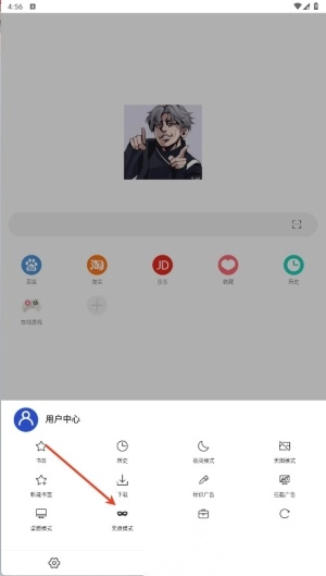 3.找到并点击【无痕模式】,系统将自动进入隐私保护状态,不会记录浏览历史、Cookies等用户数据。
