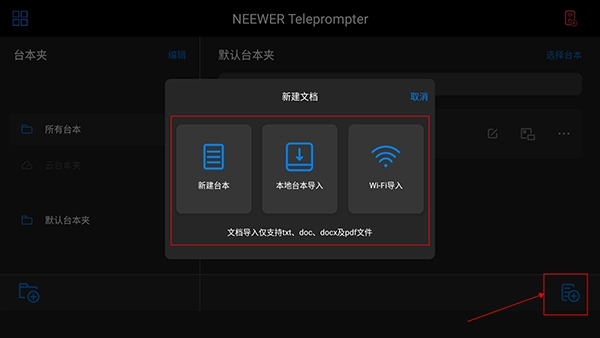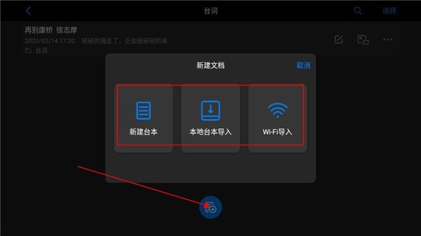 3、打开刚才新建的文件夹,在里面可以选择新建台本或者本地、WiFi导入。
