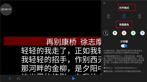 6、接下来就可以看到提词器模式啦,用户还可以设置滚动的速度和字体的大小。