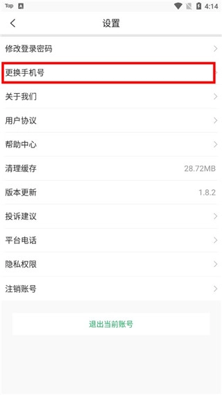 3.找到更换手机号功能并点击进入