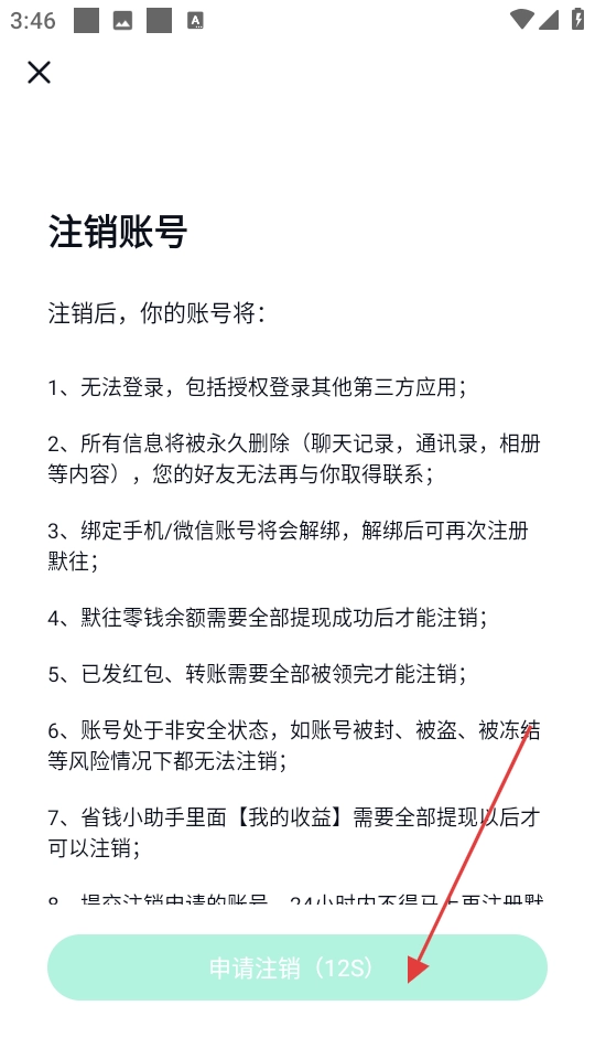 3、确认条件满足后,点击申请注销,完成账号注销。