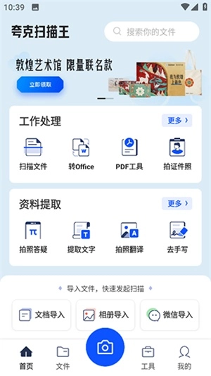 夸克扫描王手机版是一款优质的高效扫描处理软件,目前拥有扫描文件、证件拍照、图片格式转换、PDF转换、提取文字、拍照答疑、翻译、试卷去手写等几十种实用功能,可以帮助用户将纸质中的文字完完整整的呈现在PDF等各种格式文件中,满足不同用户群体需求,快来软件体验吧。