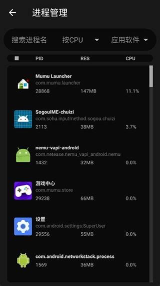 6、并且其强大的进程管理功能可以让你对手机中一些恶心的应用进程一键关闭,让你的手机运行顺畅自如