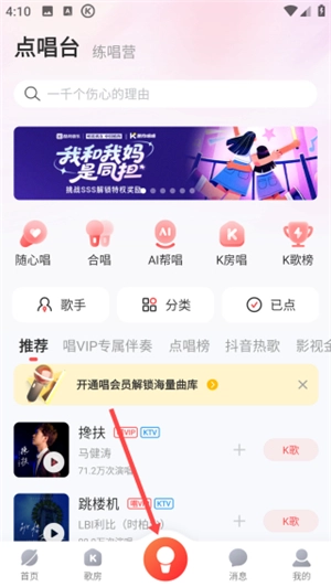 3、点击中间的点唱台想怎么唱就选怎么唱
