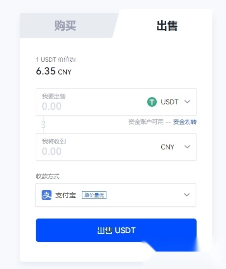 点击「出售」,依据自身持有的数字货币,选择对应的数字货币与CNY 。输入欲出售的数字货币数量。