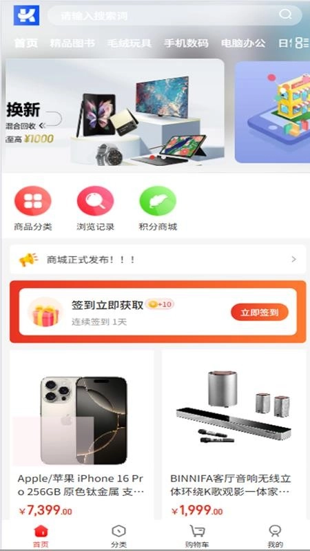非常实惠的积分购物商城,在线赚到的积分可自由兑换好物,购物更加省钱;