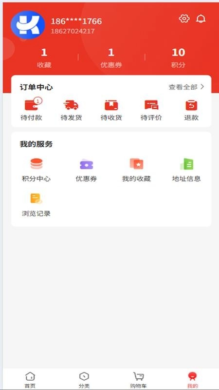 5、进入个人中心可全面管理所有订单,并能查看积分、优惠券和收藏好物等信息;