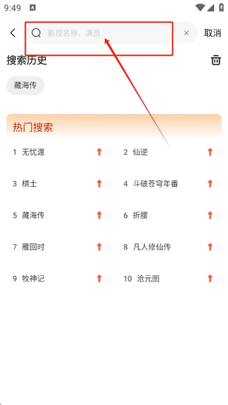 2、然后在搜索框输入想看的影视作品名称,点击搜索