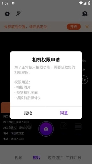 1. 精准水印会自动添加,无论是拍照还是拍摄视频,时间、地点等关键信息都将自动嵌入其中。这一功能有效杜绝虚假打卡现象,为工作留痕提供坚实可靠的依据。