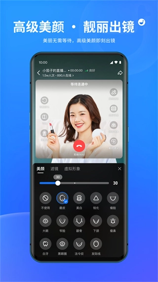 支持快速创建直播,高级美颜,连麦互动,屏幕共享,成员管理等丰富功能。