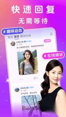 【一键搭讪】只需一键,就能轻松与陌生人展开互动,快速相识。她会陪伴你畅聊,为你排解忧愁,倾听你的心声。