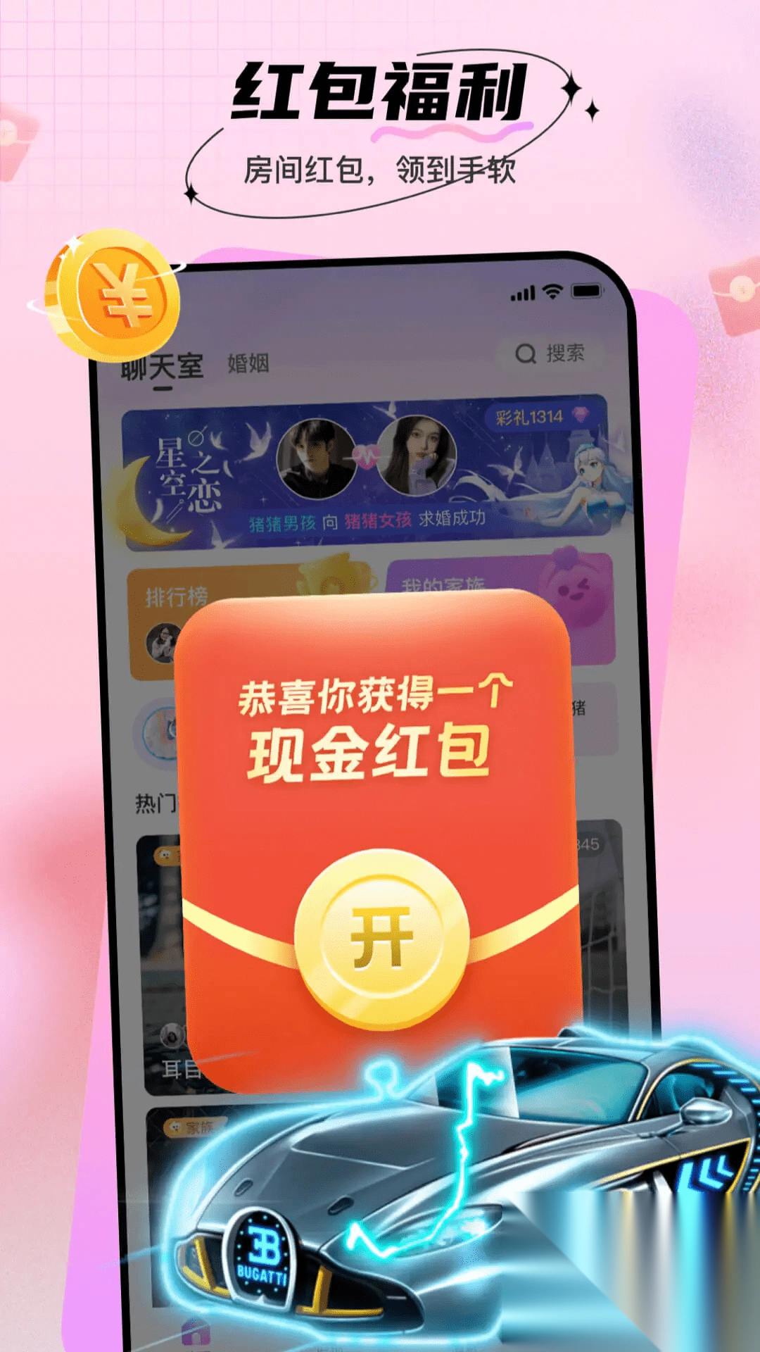 -语音聊天房:家族房、娱乐房、派对房各种主题房间随便聊。