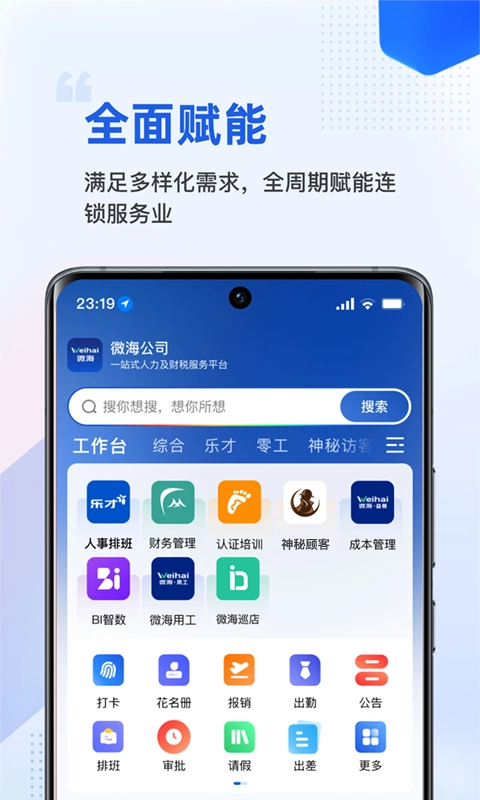 微海,是专为海底捞人事部与财务部量身定制的一体化办公平台。该软件具备众多高效协同的办公功能,其中,HR能够借助这款App开展招聘工作。不仅如此,软件还涵盖考勤、打卡、排班、认证培训、财务管理等丰富多样的功能,各类员工入职申请、转正申请等操作,都能通过此App便捷完成。