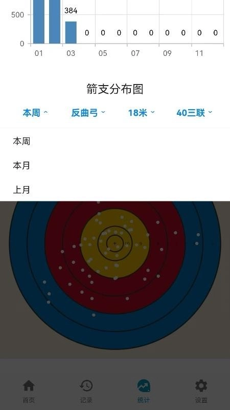 每一次射箭比赛分数都能长久保存,同时可查看本周、本月和上月比赛数据;
