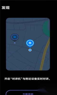 前往“发现”页点击“立即开启”打开对讲机,对方设备页需要打开对讲机才能被发现。(打开对讲机后建议您前往“我的”页修改设备名称,便于对方识别。)