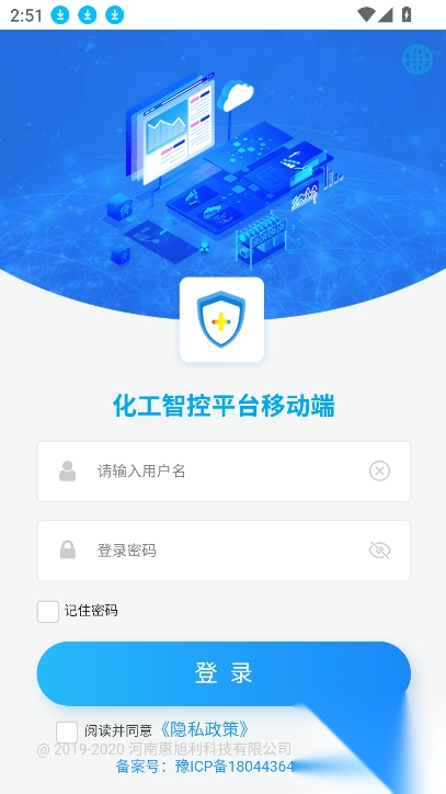 并安装化工智控,打开应用后会看到登录界面。