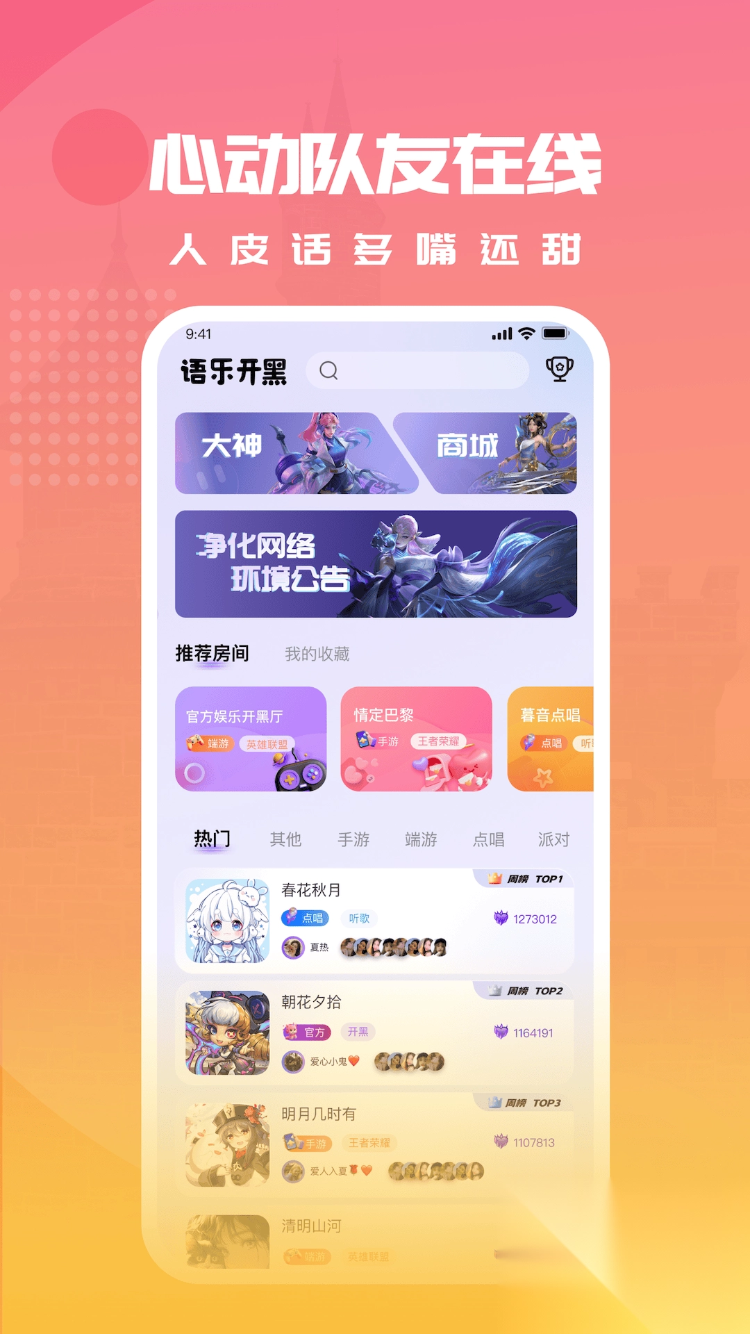 语乐开黑安卓最新版,堪称游戏开黑的必备神器。这款软件里,海量趣味玩法等您来体验。在这里,用户能够在线寻觅语音开黑伙伴,随时随地开启麦克风畅快交流互动,操作便捷无比。要是您对这款软件感兴趣,不妨点击一试!