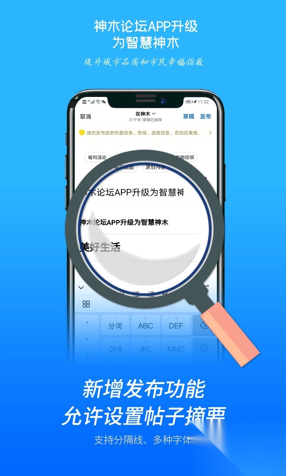 你可以通过神木论坛随时随地足不出户掌握全城新鲜、优质的活动新闻资讯,并一键发布