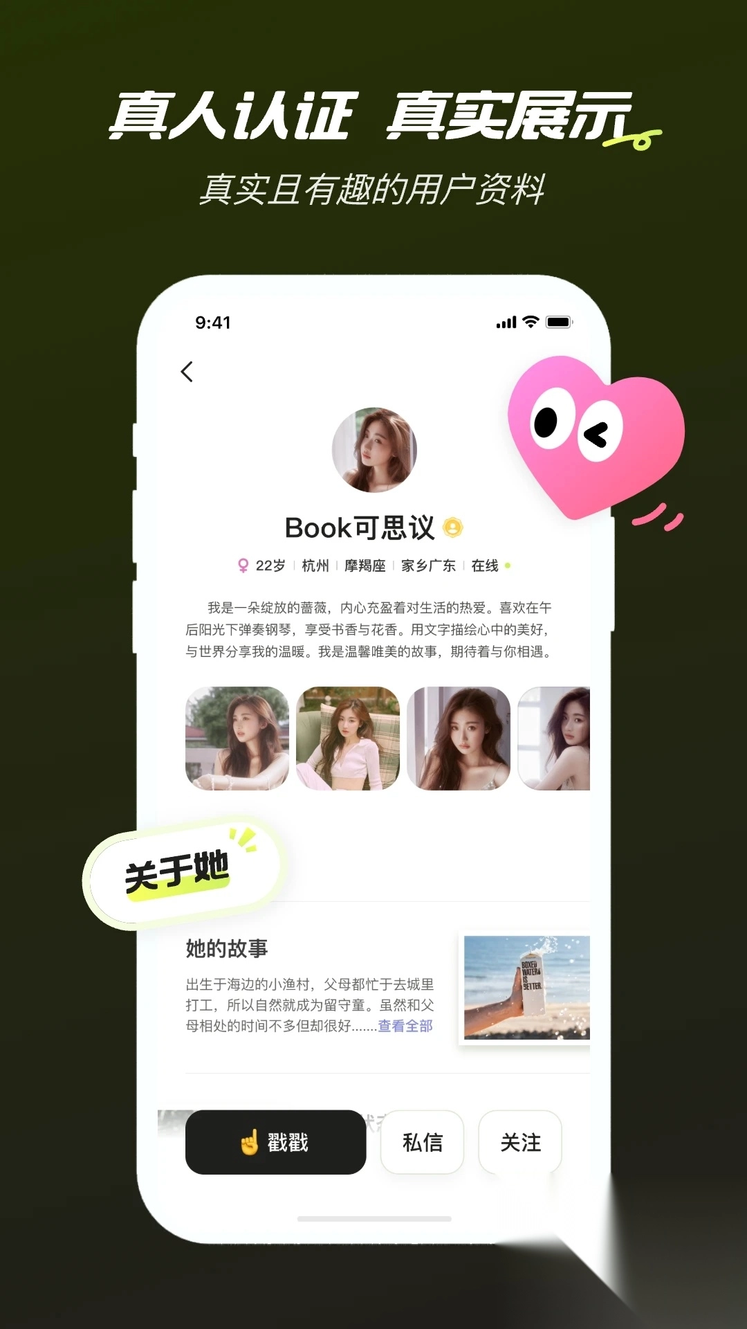 真实:实名认证、真人认证,安全可靠,放心交友;