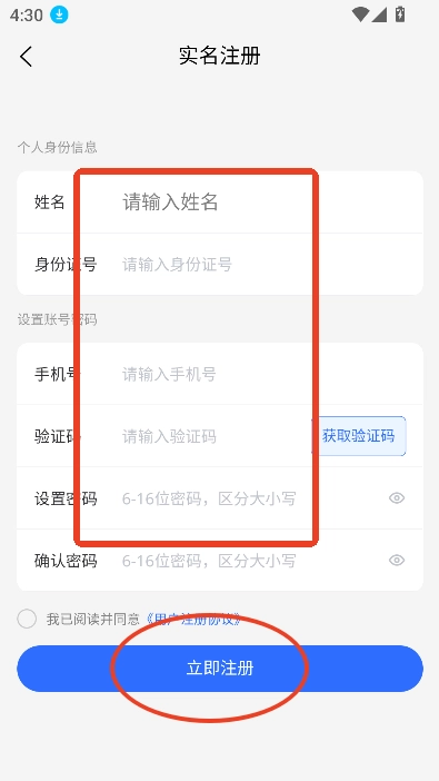 请完善您的基本信息,勾选隐私协议后,点击“注册”按钮,即可完成操作。