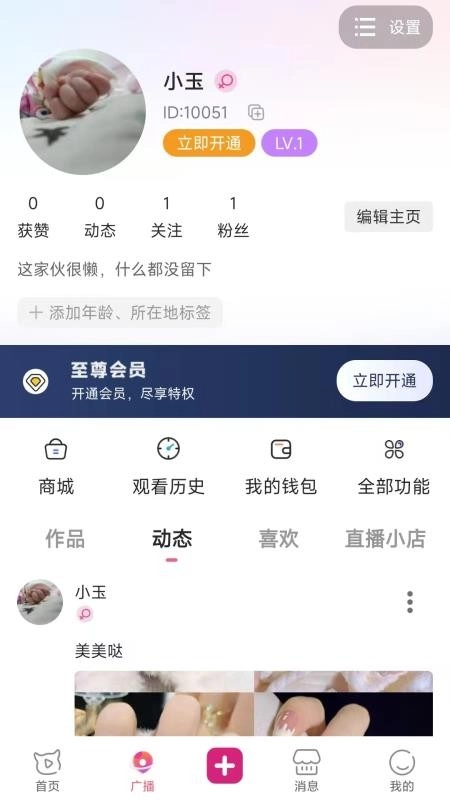 5、在个人中心就能查看关注、点赞、动态、作品、钱包等信息,还能一键开通会员;