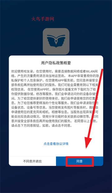 安装并打开校友录,先同意用户隐私政策概要
