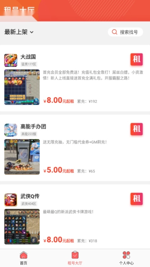 软件涵盖超多精选游戏账号租赁,更新资源丰富;