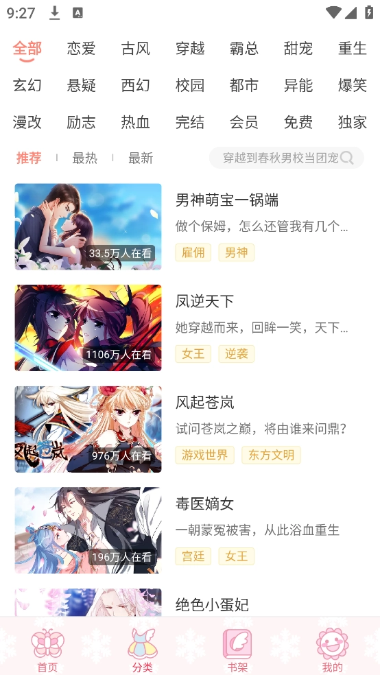 飒漫画,绝对是一款能满足你对高质量超美型漫画画风追求的手机漫画阅读软件。在这款软件里,超多美型漫画等你来发现,像曾经红极一时的《花千骨》,还有深受读者喜爱的《凤逆天下》都囊括其中。而且漫画风格丰富多样,只要你想看,轻点一下就能随心阅读,随时随地畅享看漫画的欢乐!