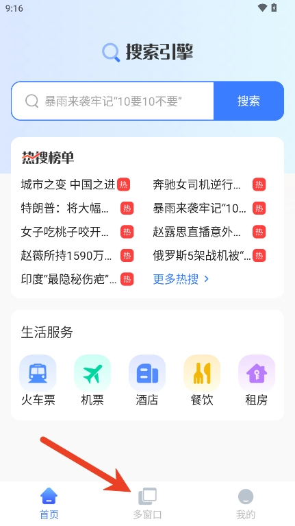 2、点击底部的【多窗口】