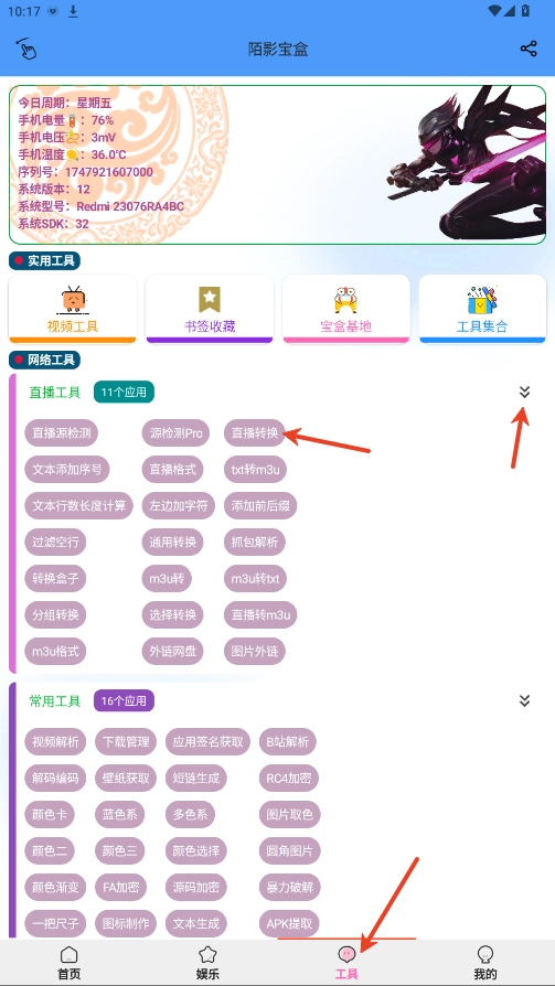 4.在“工具箱”中,使用的计算器、单位换算等功能,满足日常工具需求。