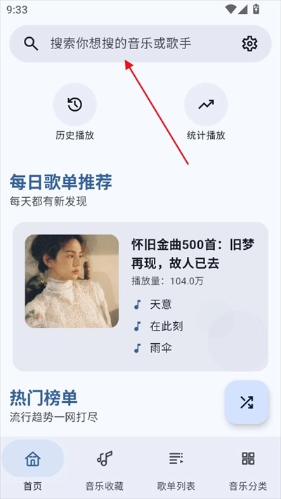 首页热门榜单覆盖多种音乐类型,更新及时且精准反映乐坛动态。