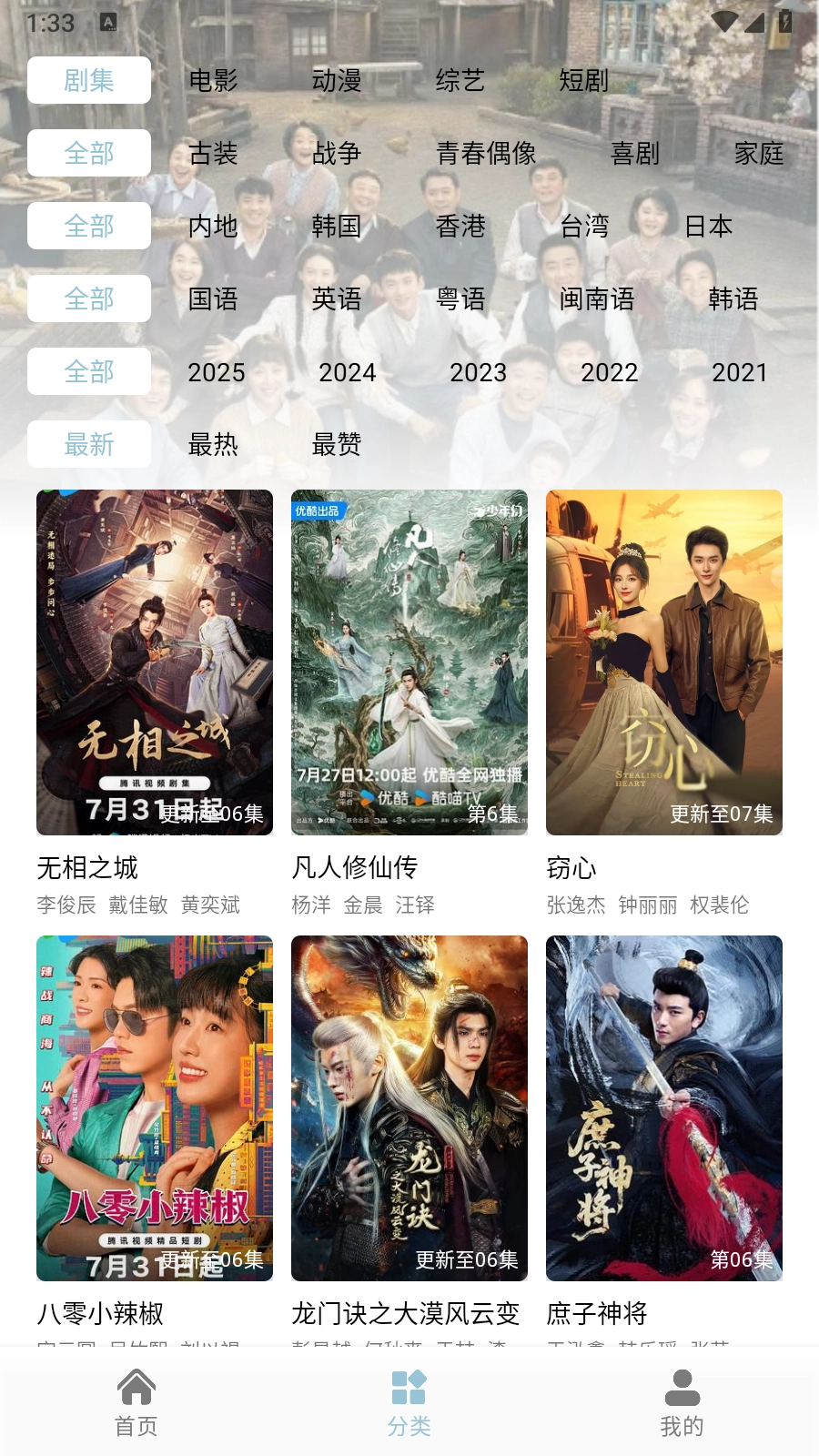 2.打开魔方影视App,可以通过影视分类找到想看的节目