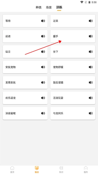 4、点击训练,这里面有很多可以训练猫咪的语音可供用户使用。