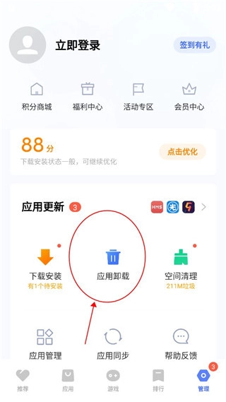 4、大家可以点击应用管理进行卸载操作;
