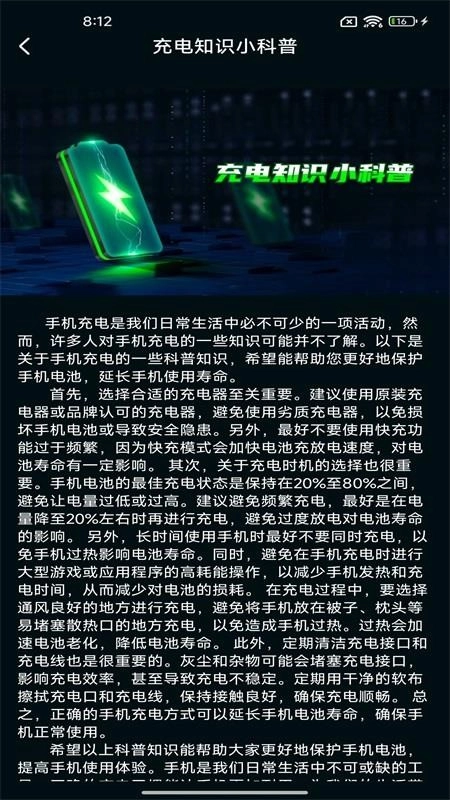1、在软件中用户可以查看充电知识科普内容,学习各种手机充电知识;