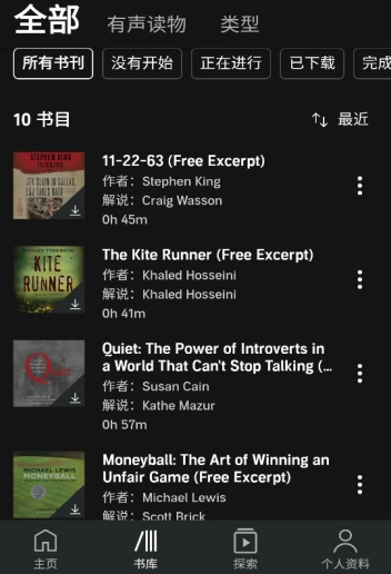 个性化体验功能:支持设置播放速度、定时关闭等功能,适配不同听书习惯;可创建愿望清单收藏心仪内容,标记“正在进行”“已完成”等状态管理听书进度;部分版本支持在WearOS手表等设备上同步收听,拓展使用场景。