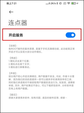 如果权限打开后,返回依然显示无障碍没有开启的,需要重启一次手机即可。