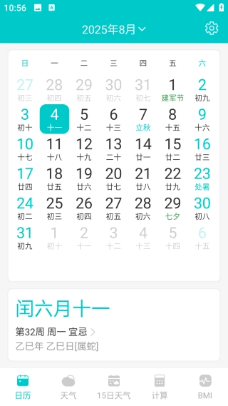 1. 完成安装后,进行授权并打开应用,随即进入【日历】界面。
