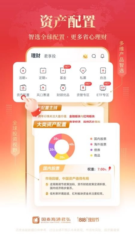 方便用户对自己的资产来进行实时配置,合理配置自己的投资理财资产,轻松配置。