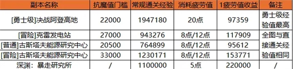 “勇士地下城”下方4个冒险级副本,获取经验值一致。