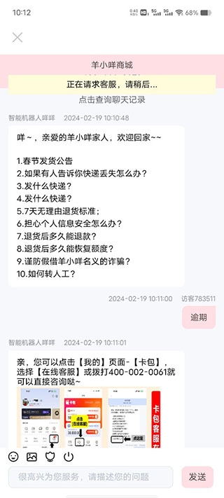 3、联系客服。如果上述方式不可行,可以直接联系羊小咩享花卡的客服进行咨询。