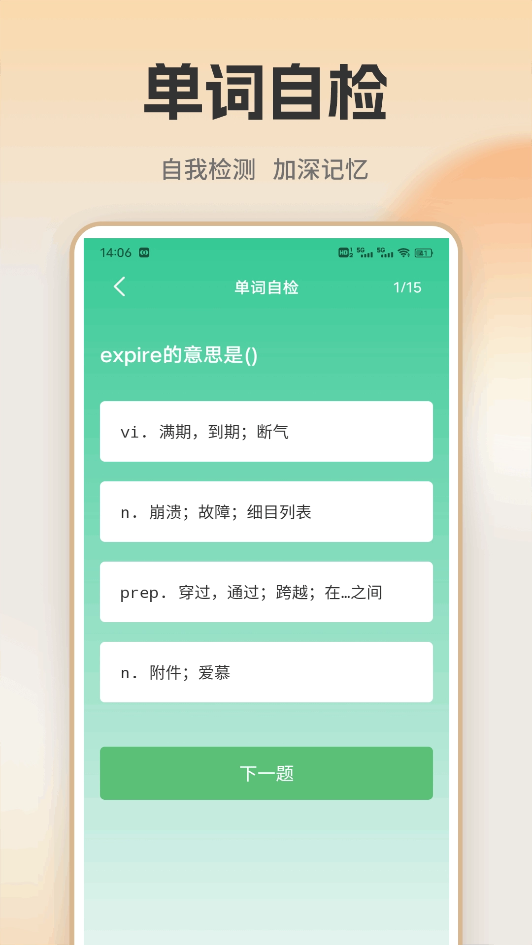 1. 进入软件后,便能瞧见一个学习计划。依据自己设定的计划展开学习,同时软件还会为你统计有待学习的单词数量。