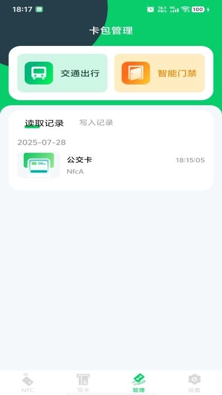NFC智能读写卡手机版,是一款极为简单实用的手机NFC管理工具。该软件能够助力用户实现NFC卡包的综合管理,充分满足用户在交通出行以及智能门禁开关方面的需求。而且,软件界面的整体设计十分简约,平台内不存在任何广告,也没有付费功能。有需要这款软件的用户,可在本站免费获取。